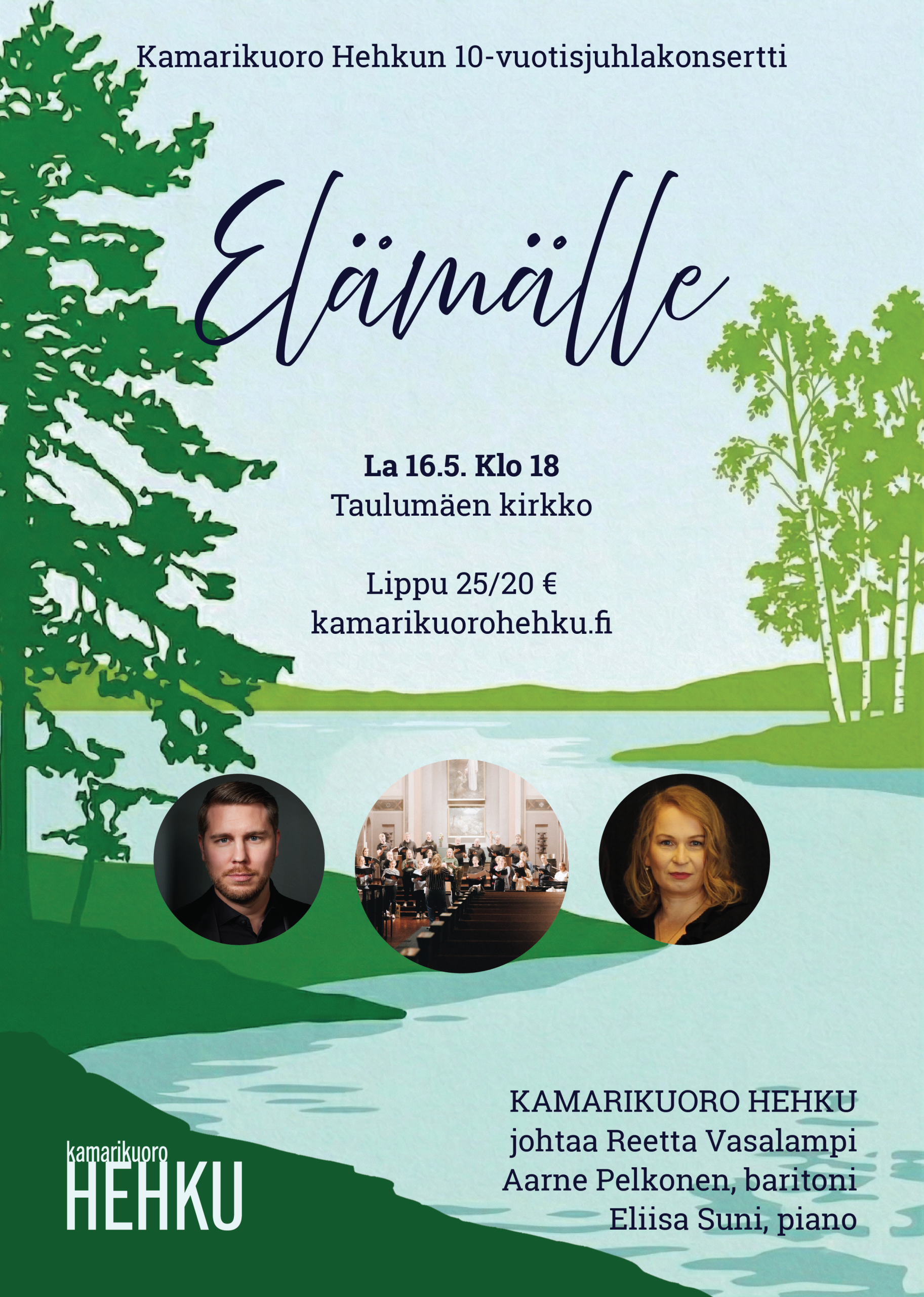 Kamarikuoro Hehkun 10-vuotisjuhlakonsertti ”Elämälle” Taulumäen kirkossa lauantaina 16.5. klo 18.